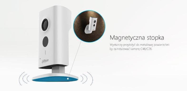 Ciekawostką są uchwyty magnetyczne pozwalające dodatkowo zamocować kamerę bez wiercenia do metalowych powierzchni – jak drzwi lodówki, metalowe futryny, ,metalowe elementy mebli itp.